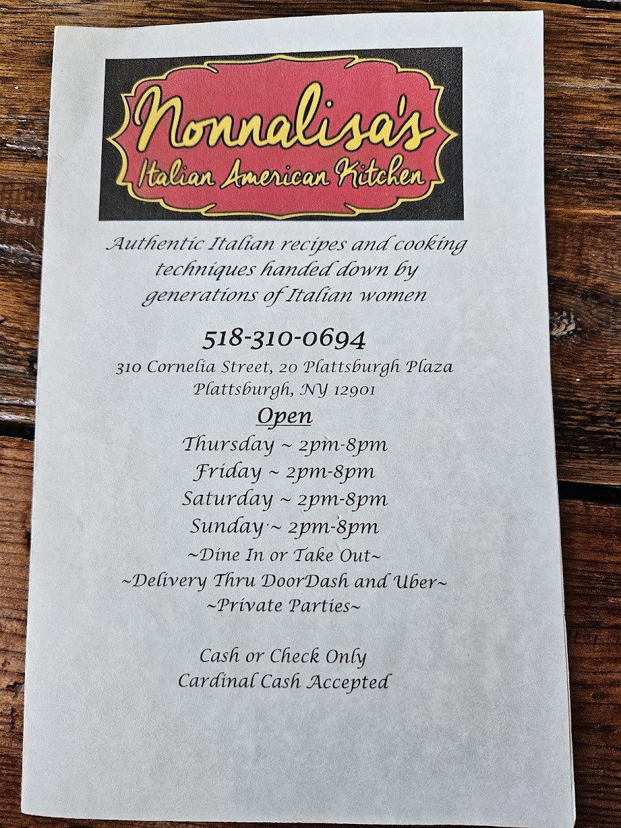 Step into a world of flavor at Nonnalisas Menu, where each dish is crafted with care and packed with deliciousness. Located at 20 Plattsburgh Plaza, Plattsburgh, NY, this cozy spot brings a unique blend of mouthwatering dishes to satisfy every craving. From fresh salads to rich, hearty pastas, the menu offers a variety of options that cater to every taste and dietary preference. You’ll find traditional favorites with a modern twist, all made with the finest ingredients.